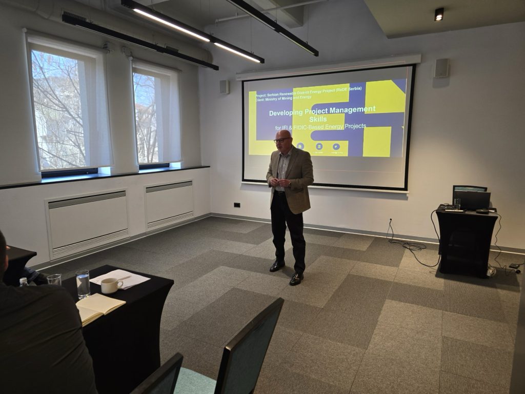 The Renewable District Energy (REDE) Project team successfully delivered a full-day training in Belgrade, Serbia, focused on FIDIC contract implementation, project management, and financial control for CPIU and PIU staff, as well as embedded experts.